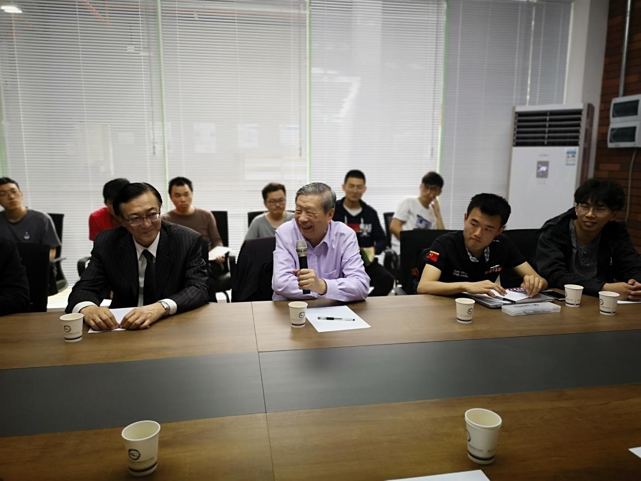 刘大响院士听取了学院整体情况介绍和大学生方程式赛车队的汇报,并对学院学科建设、人才培养、科学研究等给予了指导性建议。他和与会师生分享了自己的工作经历,谈到当年的研究条件非常艰苦,要面对外界的种种物质诱惑,但靠着不怕苦不怕累的精神、“国家的需要就是我们要做的事”的信念、不能辜负国家培养的责任感,坚守在山沟沟里,辛勤工作了三十载,把最好的青春年华都奉献给了科研事业,最终攻克难关,在航空发动机研发方面取得重大成果。刘院士指出,大学的主要职责是培养人才,教书育人是重点,要加强思想政治教育,在立德树人上下功夫,引导学生树立正确的人生观、世界观、价值观。刘院士提到要重视知识产权的保护,促进科技成果转化,要“把论文写在祖国的大地上”。刘大响院士作为老一辈的科研工作者,工作在航空工业界五十八年,他以自己的经历勉励同学们遇到困难一定要坚持到底,要热爱我们的国家,要勤奋、团结、拼搏、奉献,终能有所作为。