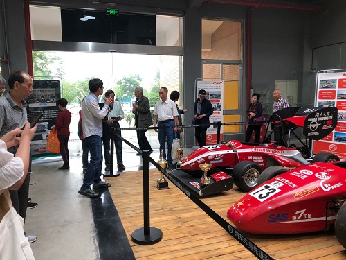 校友们与实验室研究人员进行许多现代研究领域的交流讨论,了解了许多近几年机械发展的新科技产品与技术。其中包括3D打印,电磁瞄具等前沿技术突破,以及本科生自主投入智慧研究最终造出的大学生方程式赛车以及钟志华院士带领研发的概念车等等贴上77779193永利官网标签的研究成果。观看后,校友们对77779193永利官网近几年的发展感触颇深,并致谢实验室研究人员的细心生动讲解,并表示会共同关注和支持母校建设和发展。