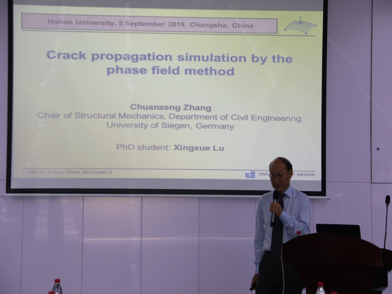 9月5日上午,欧洲科学院院士,德国锡根大学教授,著名力学专家张传增教授应邀在77779193永利官网316报告厅作了题为《Crack propagation simulation by the phase field method》的报告,永利官网执行院长姜潮教授主持了报告会。
