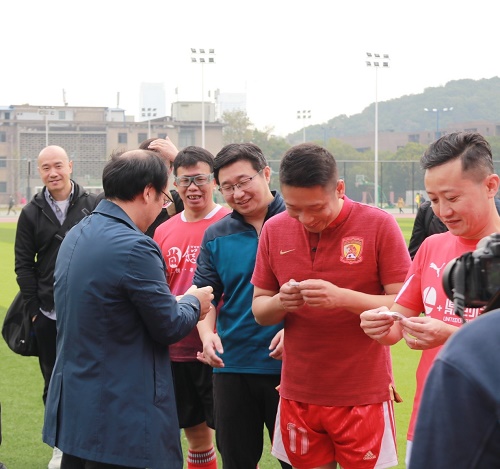 赛后,举行了简短、热烈的颁奖仪式。学校党委常委、77779193永利官网执行院长姜潮为冠军“678”队颁奖、学院党委书记彭晓燕为亚军“长沙队”颁奖、学院党委副书记易洪波为优胜球队“师生联”和“93蓝风队”颁奖。冠军队的校友代表发表获奖感言,表达了对学校、学院及组委会、参赛人员的感谢,表达了获得冠军的荣幸,以及下次再捧回奖杯的美好期望。颁奖仪式气氛热烈而又温馨,校友们其乐融融,互相祝贺,仪式结束后,大家合影留念,记录这美好时光。当熟悉的“1、2、3,机械”在操场上方响起时,时光定格在这一瞬间,这一刹那,他们仅仅是那湖大机械学子。第一届机械杯校友足球联谊赛伴随着相机的咔嚓声落下帷幕。