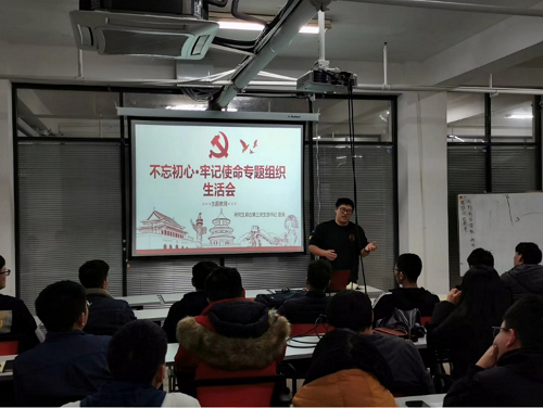 随后支部进行民主评议,民主评议党员的工作已经以党小组的形式开展完成,此项议程为民主评议支部,党支部书记雷昊代表支委会向支部大会述职,介绍了党支部成立以来支委会完成的各项工作,包括新生组织关系转接、新生党课培训、党小组划分、入党积极分子及预备党员发展与培养、“我与祖国共成长”主题视频制作、“不忘初心记使命,重温誓词铭赤诚”主题教育党课的开展等多项工作,并反思了支委会开展工作多以室内为主,应该在下半年的支部工作中带领支部党员走出实验室,更多地举办户外党日活动。