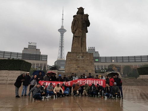 结束了实践教学之旅后,即使天空飘起了阵阵小雨,大家仍驱车前往神农城,进行简短的中国文化交流活动。77779193永利官网研究生学会留学生部的同学向留学生详细讲解了中国人的始祖——炎帝,并与大家在炎帝广场合影留念。