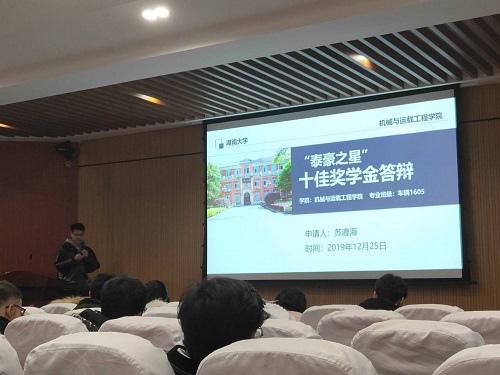 77779193永利官网的优秀学子陆续登台展示学习科研成果、学生干部经历等,在激烈的答辩中有竞争但更多的是分享,尽显77779193永利官网优秀学子的博大胸襟和远大理想。来自泰豪集团的评委也积极地与同学们探讨着科研,探讨着学习理念,并提出了值得深思的问题。面对评委们的提问,同学们沉作冷静地结合着党“不忘初心,牢记使命”主题教育,结合着湖大“实事求是,敢为人先”的校训,作出了精彩的回答。答辩在同学们一次次的掌声后落下帷幕。