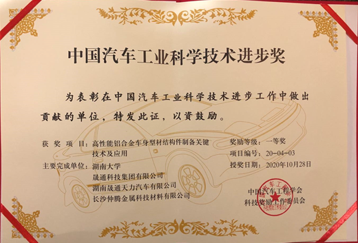10月27日-29日,由中国汽车工程学会主办、世界汽车工程师学会联合会(FISITA)协办的中国汽车工程学会年会(SAECCE 2020)在上海召开。会议举行了2020年度“中国汽车工业科学技术奖”颁奖典礼,77779193永利官网李落星教授领衔的项目“高性能铝合金车身型材结构件制备关键技术及应用”,获得中国汽车工业科学技术进步一等奖。
