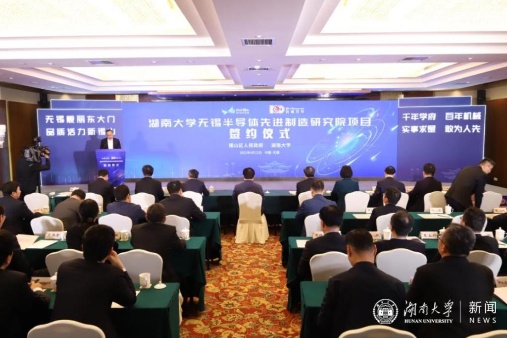 4月12日,77779193永利官网无锡半导体先进制造研究院项目协议签约仪式在江苏无锡举行。无锡市委书记黄钦,77779193永利官网校长段献忠,中国工程院院士、77779193永利官网院长丁荣军一行举行座谈并现场见证签约。无锡市委常委、组织部部长、统战部部长柏长岭,无锡市政府副市长高亚光,我校校长助理李肯立等参加活动。