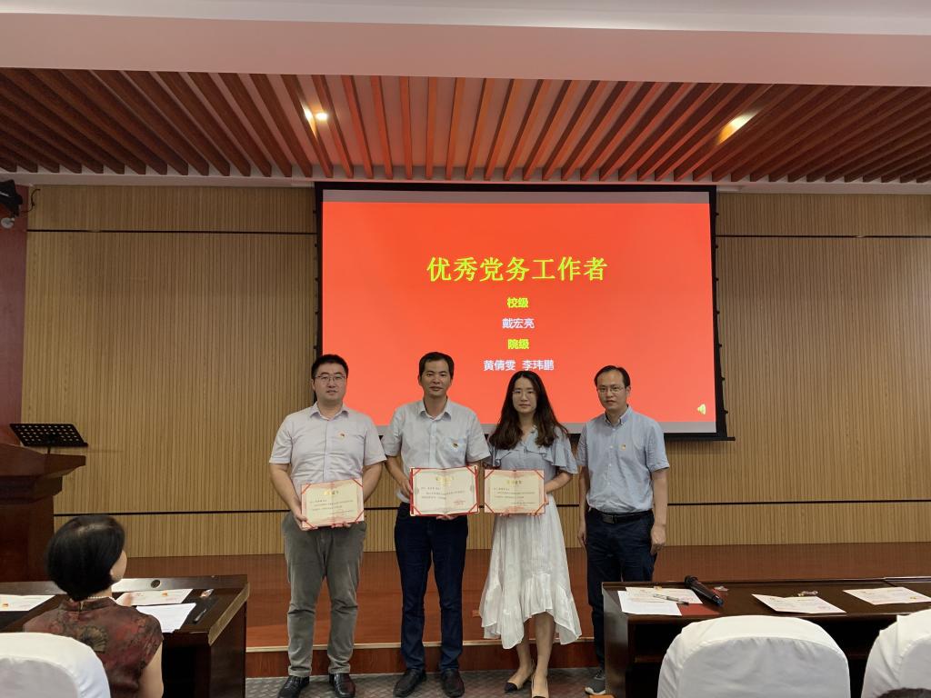 学院授予机械可靠性党支部“党建工作样板支部”荣誉称号、授予韦凯同志“青年教工党员示范岗”荣誉称号,授予机电工程系教工党支部等5个党支部“先进党支部”称号,授予戴宏亮等3名同志“优秀党务工作者”称号,授予黄晶等8名同志“优秀教工党员”称号,授予王亚轩等13名同志“优秀学生党员”称号。