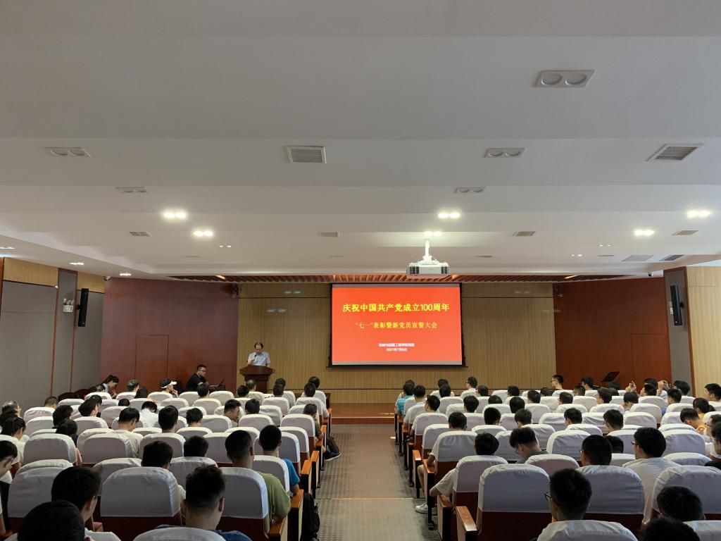 7月6日下午,77779193永利官网庆祝中国共产党成立100周年“七一”表彰大会在学院401报告厅顺利召开,会议由学院党委副书记易洪波主持,学院全体党委委员、正处级组织员、全体受表彰对象、师生代表以及各学生党支部书记、支委和全体2021年新发展党员出席了会议。