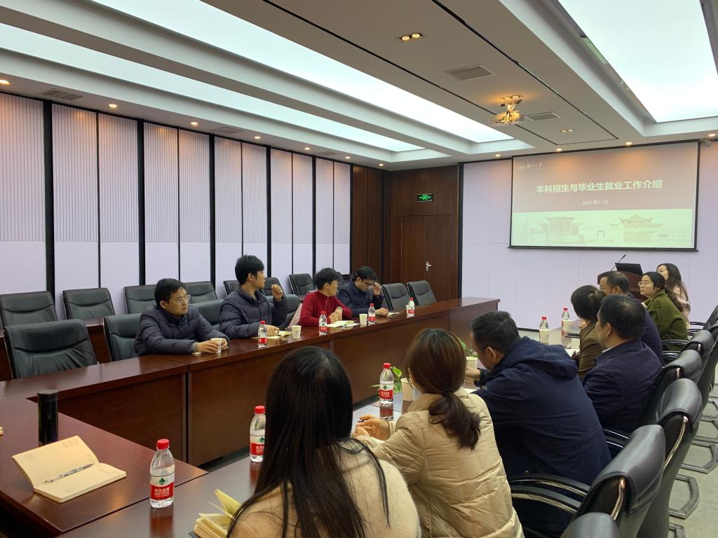 12月1日上午,招生与就业指导处一行来永利官网开展调研,于院楼316会议室就本科生招生情况、学院参与招生及招生宣传情况、生源质量分析、下阶段工作重点等话题展开交流。招生与就业指导处处长陈义红、副处长徐虎翼、77779193永利官网党委书记彭晓燕、副书记贺迅、副院长张屹、学工办全体教师等参与调研。